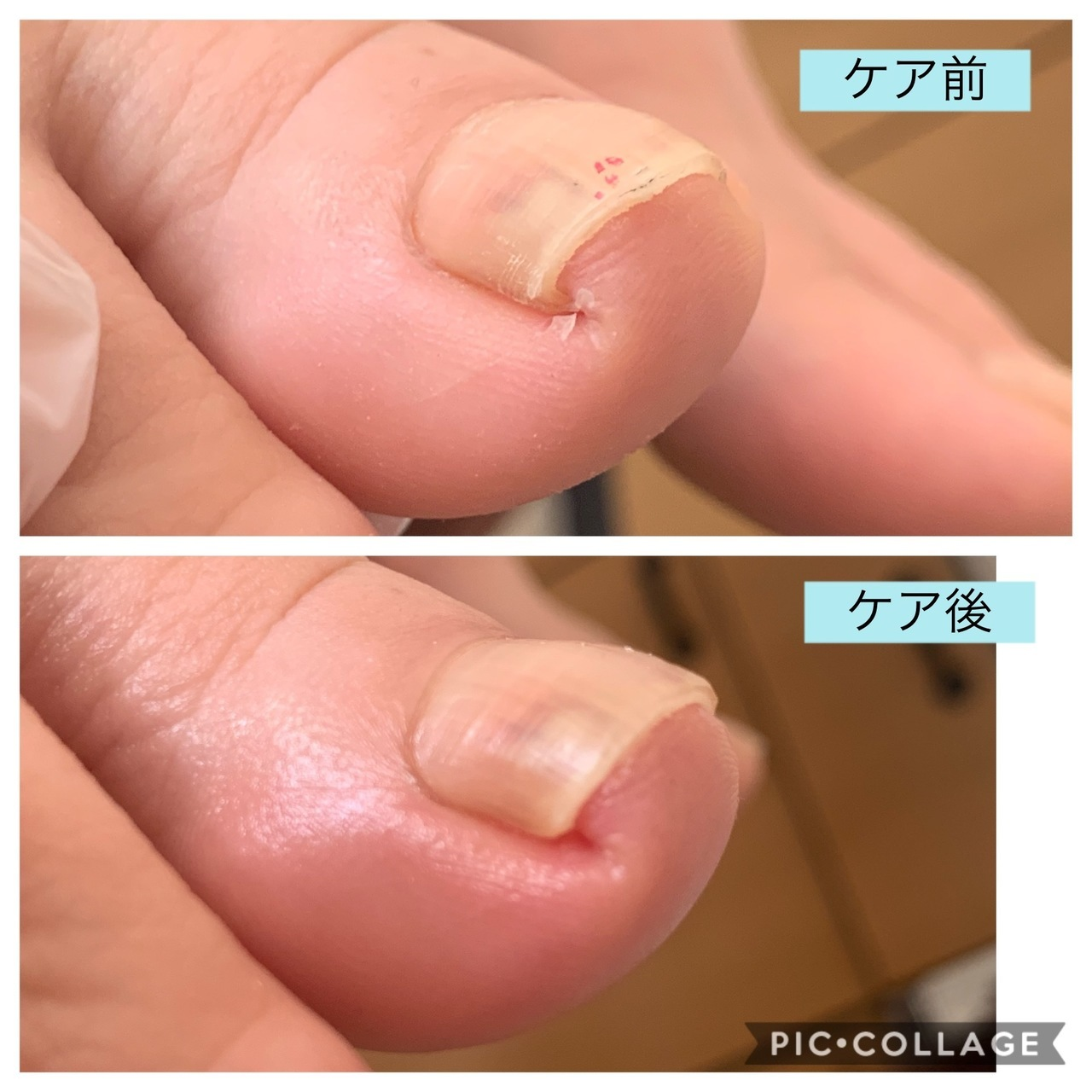 くい込んだ部分の爪をカットし、圧迫しても痛みが出ない状態になりました♡