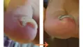 長い間、左足親指の巻き爪の痛みに悩んでいました。通販で何種類も巻き爪ケアグッズを購入しました。ある矯正器具を付けた時には爪の成長を妨げたのか、爪が前に伸びず厚く盛り上がってきてしまったので、相談に伺いました。